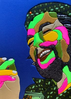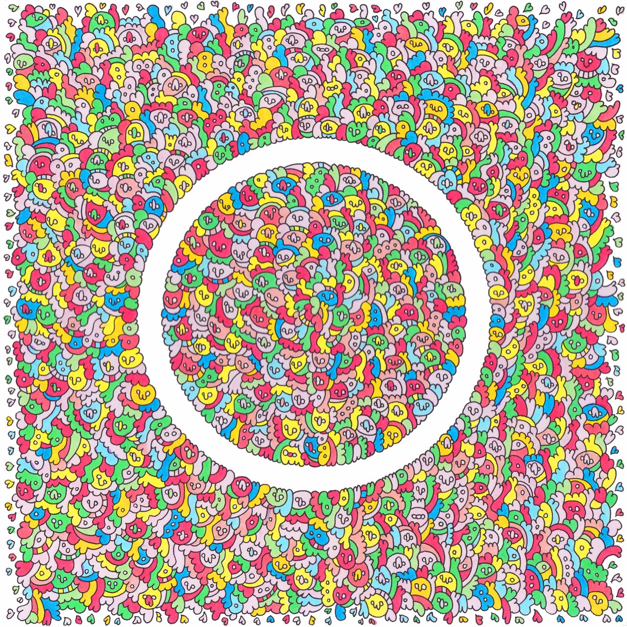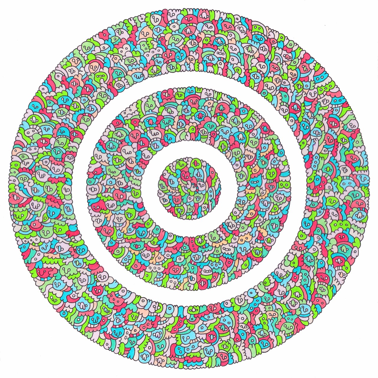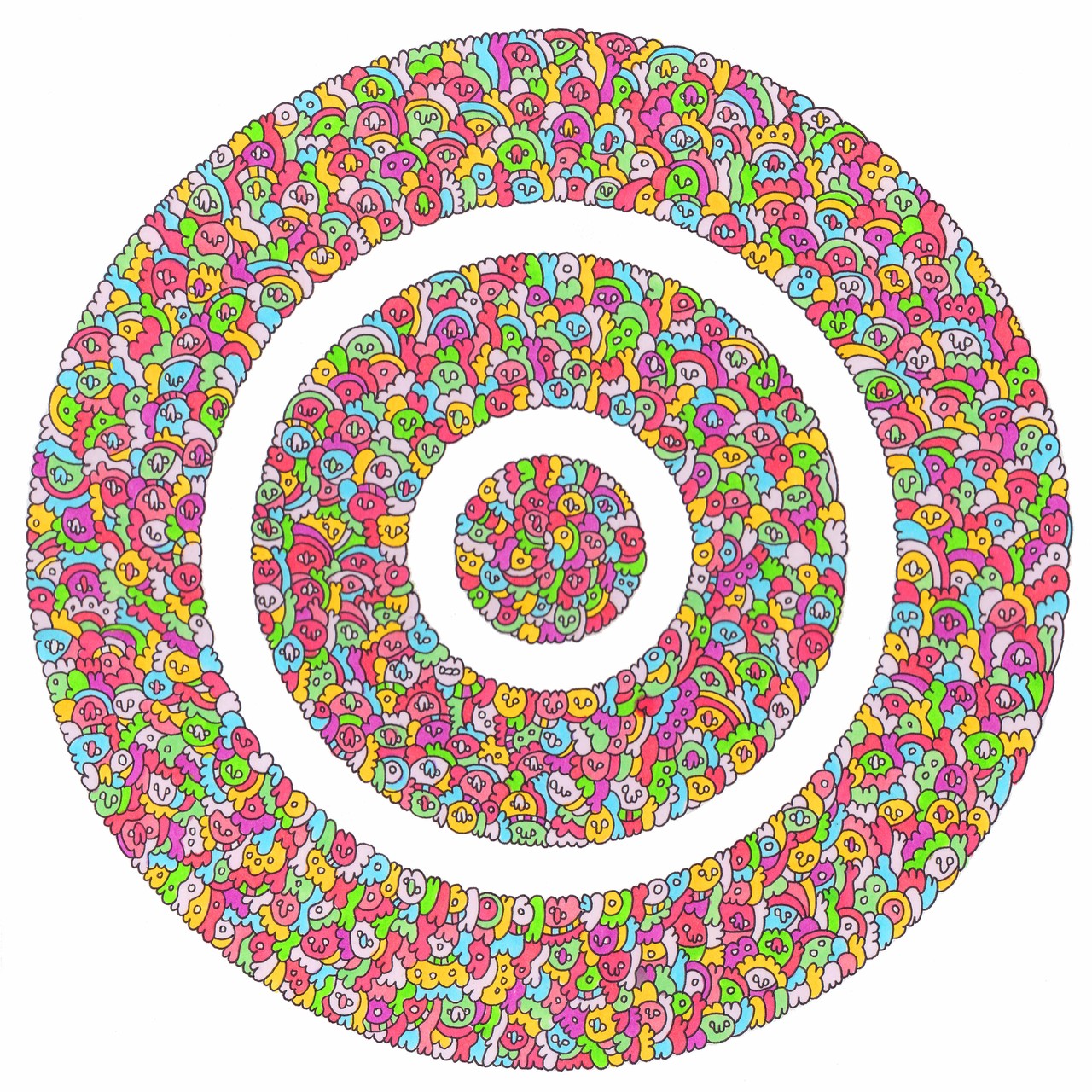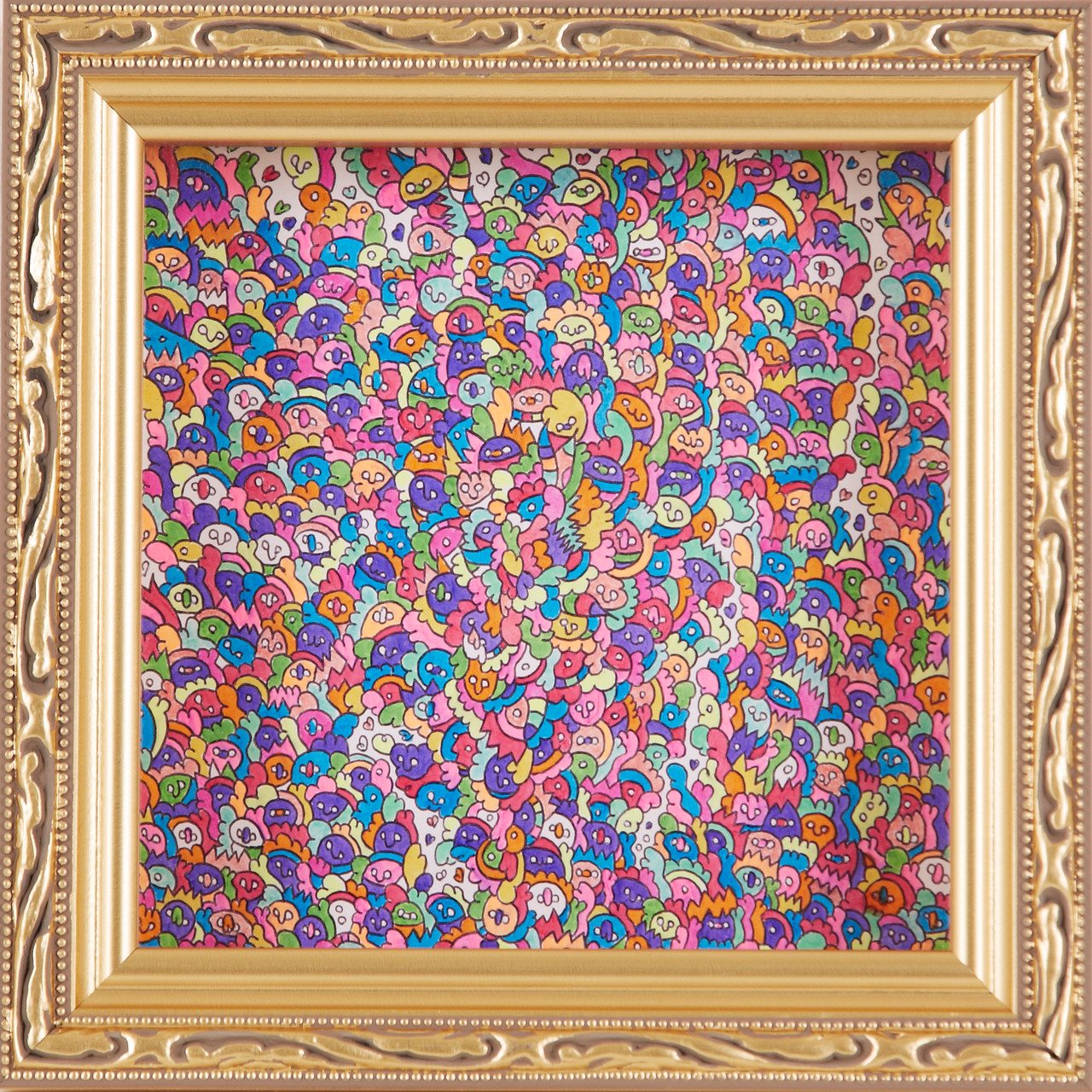 次は何をキメコもう?いつも悩むテーマの中で頭の中にヒントとして流れてきたメロディーは??世界中で人気を博してきた、トップシンガーたちの声でした。様々な人物の歌声が聴こえてきそうなカラフルでポップなキメコミアートに仕上げました。