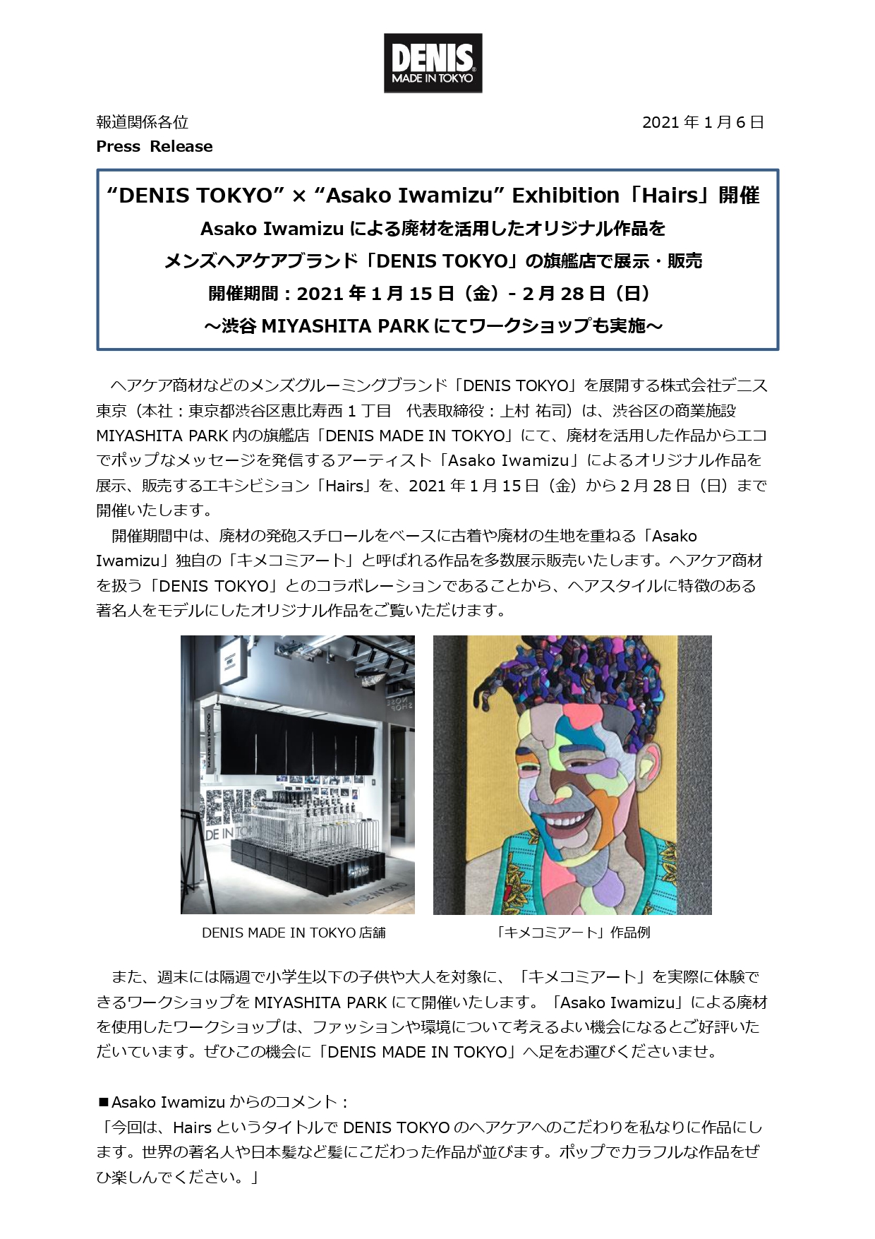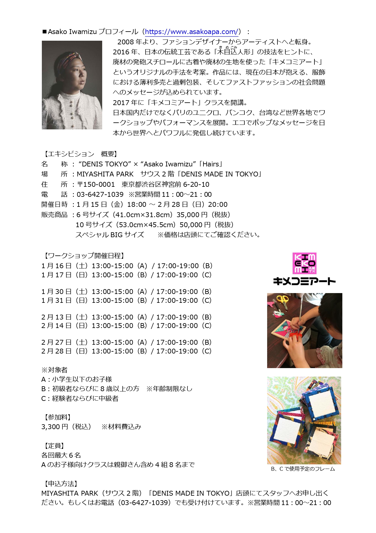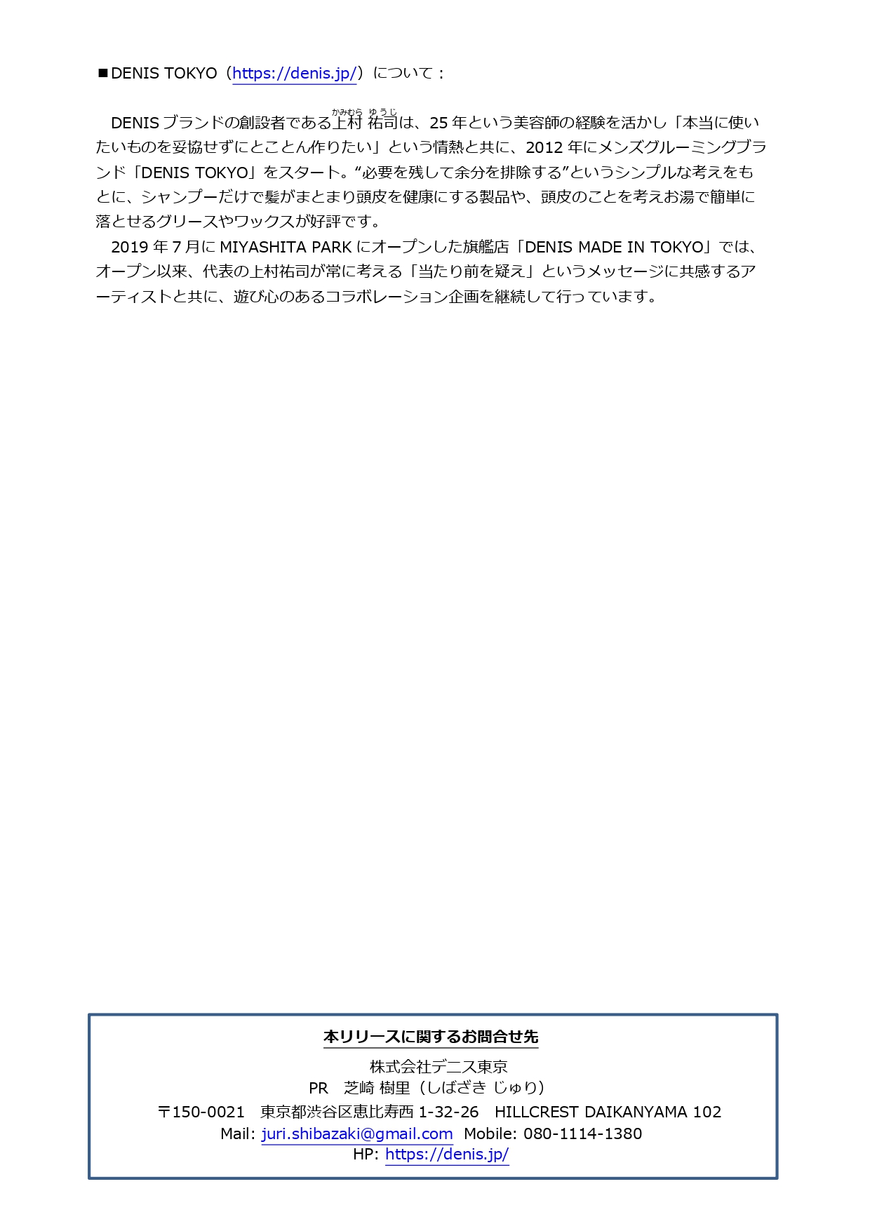 〒150-0001 東京都渋谷区神宮前六丁目20番10号 MIYASHITA PARK South 2F 20500 http://www.denis.jp/ 03-3476-6488j