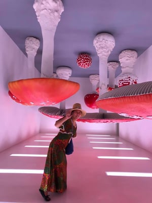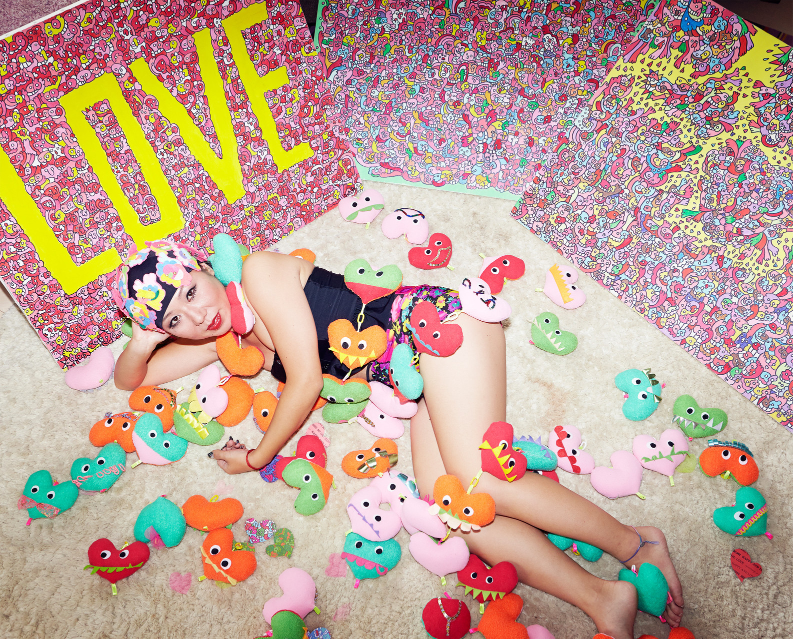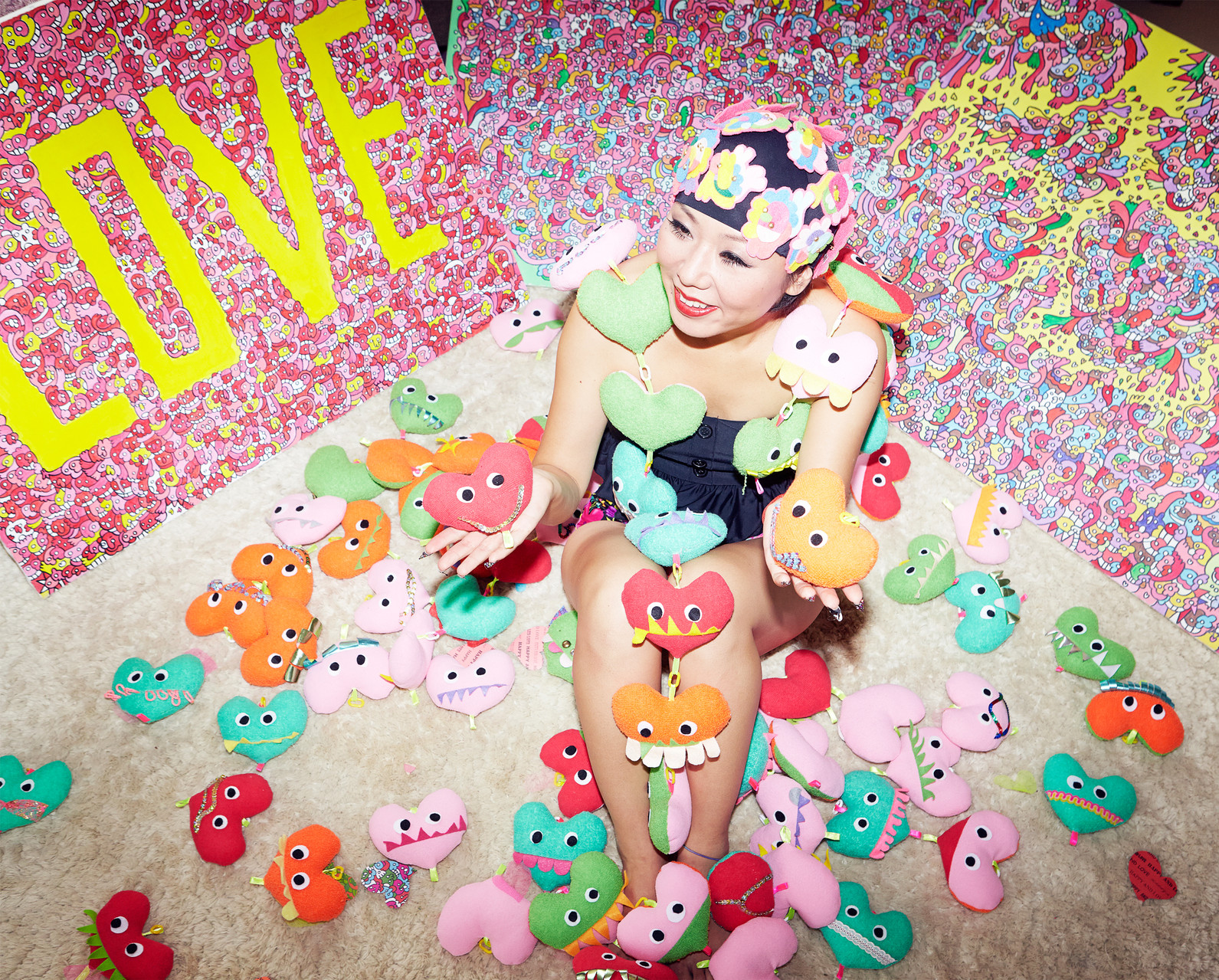 Her aesthetic is based on her experiences, accumulated since her youth, and includes elements of the Japanese "Kawaii" culture fused with pop sensibilities, creating work pieces that are appealing to visitors of various generations.