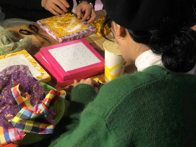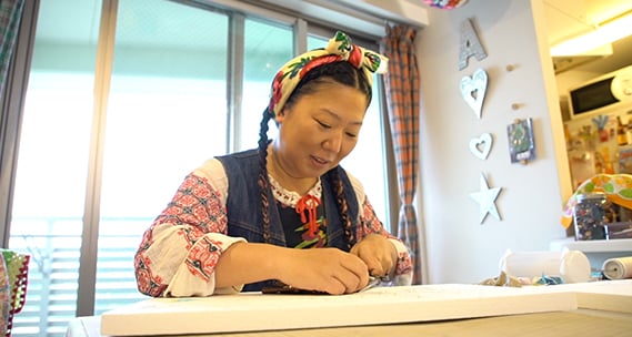 Kimekomi Art is a new pop art that includes elements of Japanese crafts and is not bound by tradition.