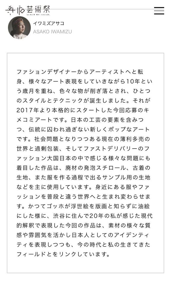 渋谷芸術祭 SHIBUYA AWARDS 2019 ”祝入選”