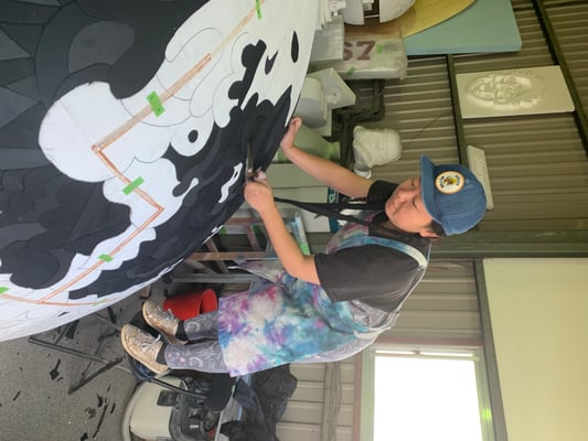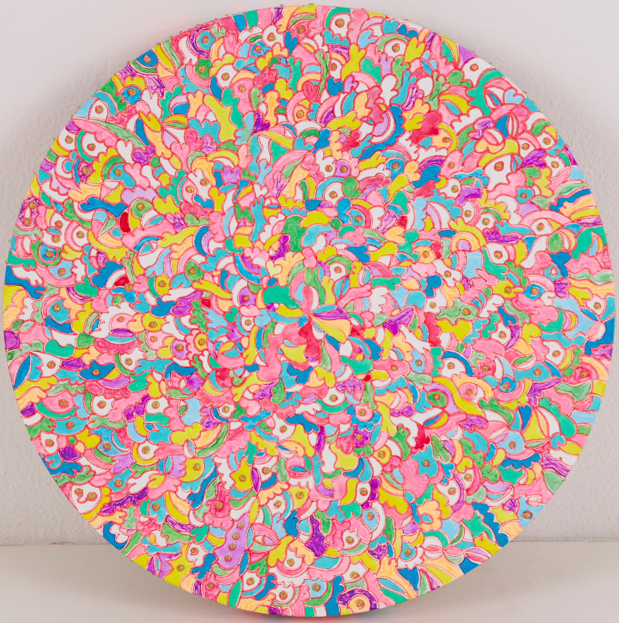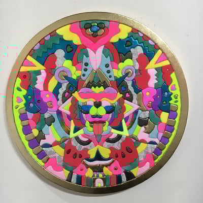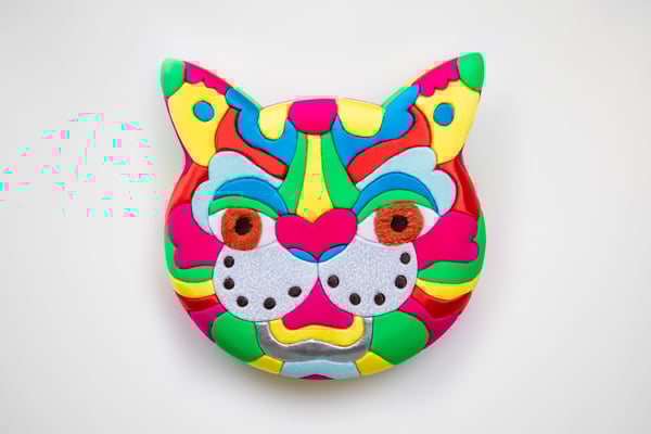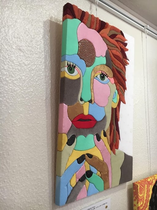 幼い頃から養われた独特の感性から生み出される作品はカラフルで鮮やかな作品が多くどこか人を笑顔にする不思議な魅力を発している。