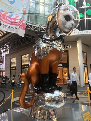 3年に一度開催される瀬戸内国際芸術祭。そこに訪れる国内外のゲストを高松丸亀町商店街でも心からおもてなししたいと思い、『SHIP’S CAT+kame3 2019祝祭 ~おいでまい 高松丸亀町商店街~』を企画しました。芸術祭らしく、現代アート作家ヤノベケンジ氏のパブリックアート(『SHIP’S CAT』シリーズほか)をあちらこちらに展示し、アートを身近に感じながら、商店街を巡っていただきます。 http://shukusai.jp/#event