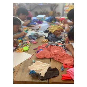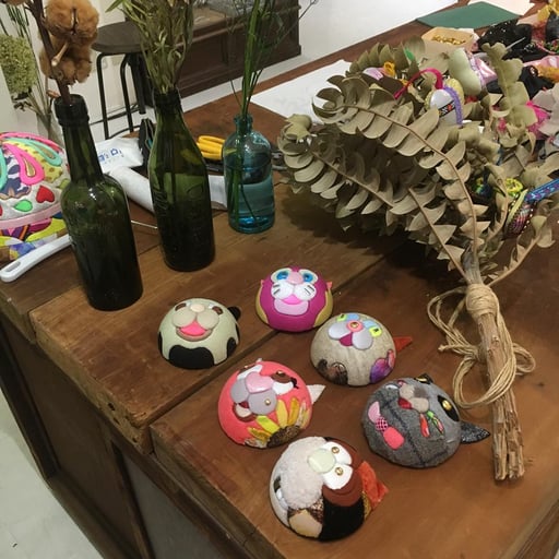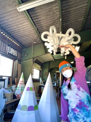廃材の発泡スチロール、古着の生地、服を作る過程で出るサンプル用の生地などを主に使用しています。