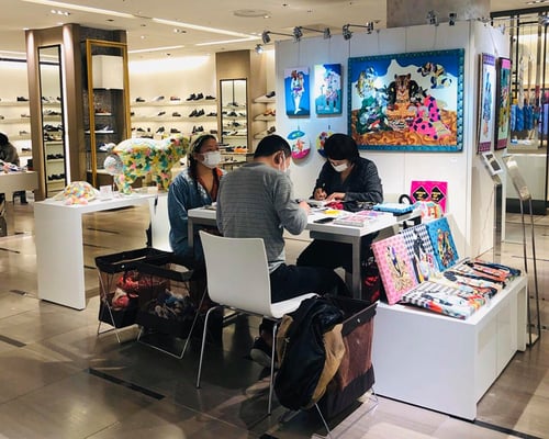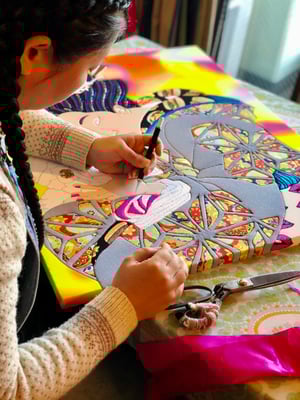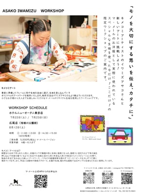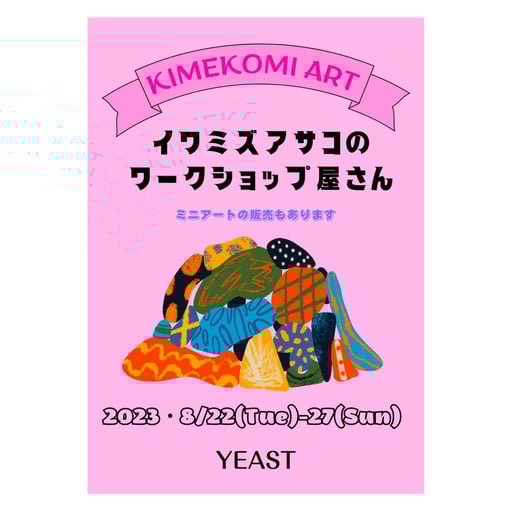 会場では新作の展示販売と期間中には、店頭にてキメコミアートのワークショップも予定(日程は近日お知らせ致します)ずっと温めていたニューパターンの絵型が登場予定です。