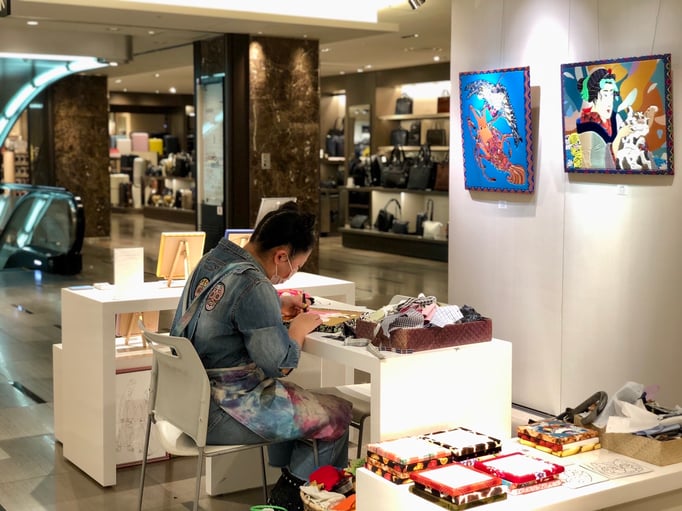 銀座三越で、古着や廃材などを材料として積極的に使用した"キメコミアート"の生みの親であるイワミズアサコの作品展を開催!